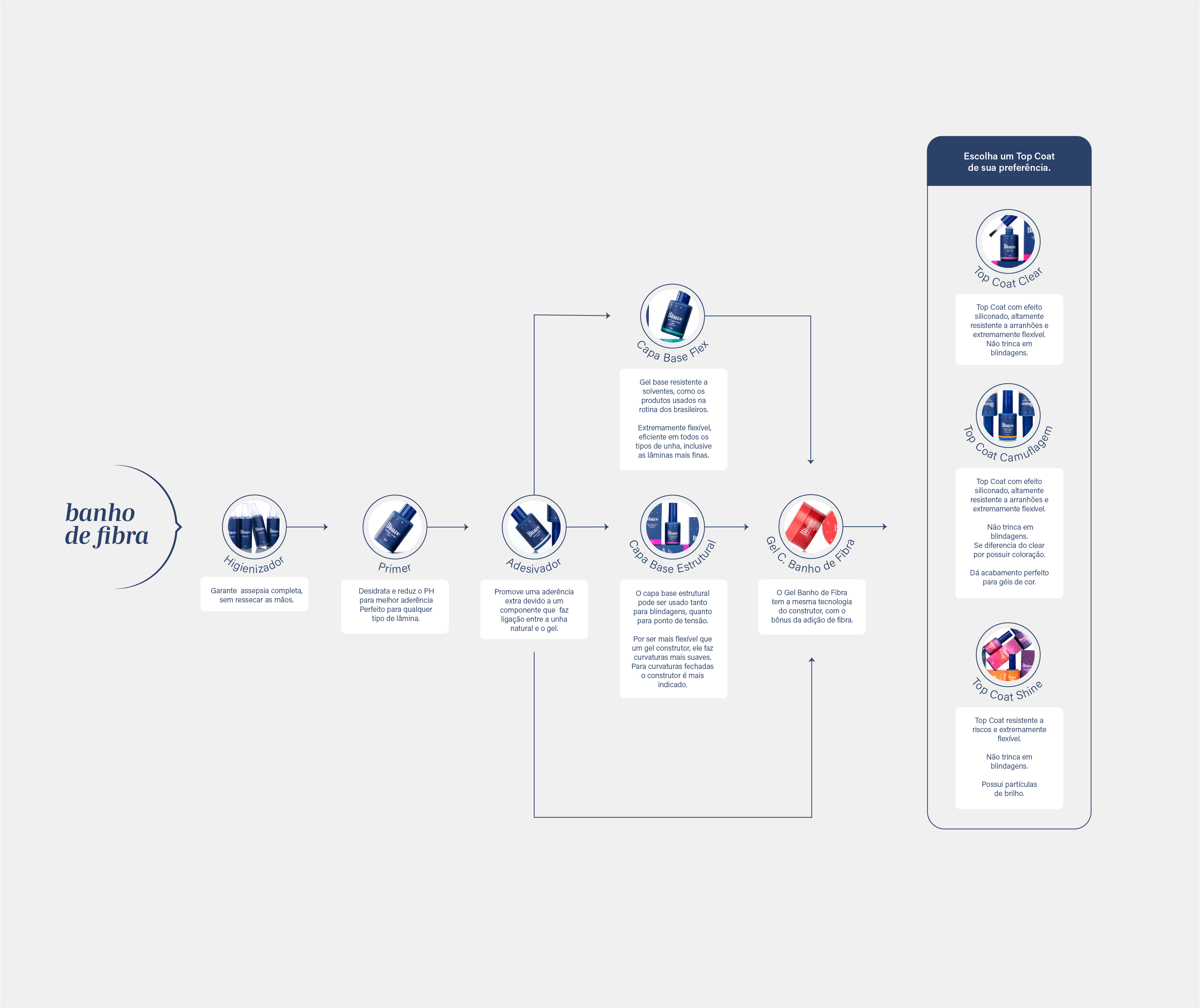 Preparação da unha: Higienizador → Primer Ácido → Adesivador.